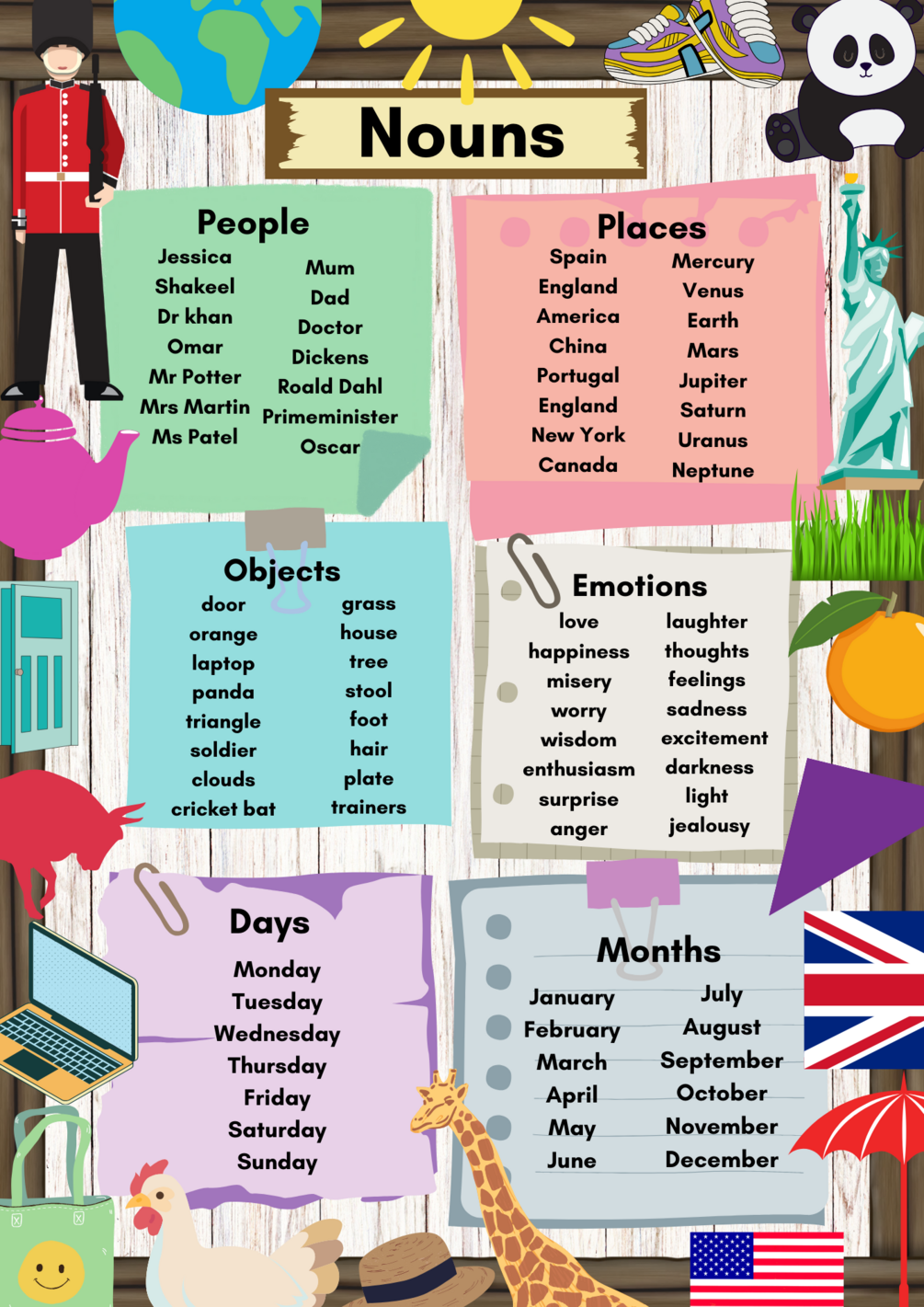 English Poster, Word Groups in Speech, Nouns, Size A4 (8.3" x 11.7")